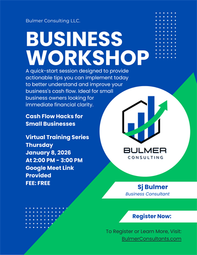 To Register: Visit bulmerconsultants.com/register-now/ and select "Cash Flow Hacks for Small Businesses."