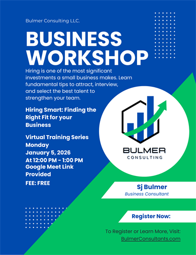 Hiring is one of the most significant investments a small business makes. Join Sj Bulmer, Managing Partner and Profit Mastery Certified Facilitator, for this free virtual workshop to learn fundamental tips to attract, interview, and select the best talent to strengthen your team.